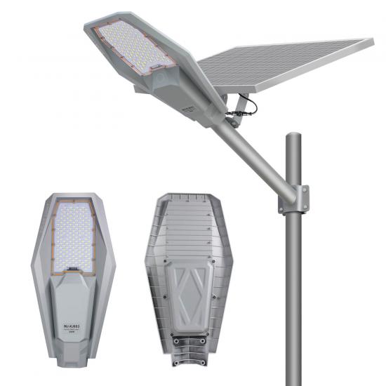 HJG Series Solar Street Light is designed for high-performance outdoor lighting with enhanced durability and efficiency. Available in 100W, 200W, 300W and 400W models, it features a split design with a high-efficiency monocrystalline solar panel and a powerful LED lamp head. The aluminum housing ensures excellent heat dissipation and weather resistance, while the IP65 waterproof rating makes it suitable for year-round use. Equipped with intelligent light control and motion sensing, the HJG series is ideal for streets, rural roads, gardens, and public outdoor spaces.